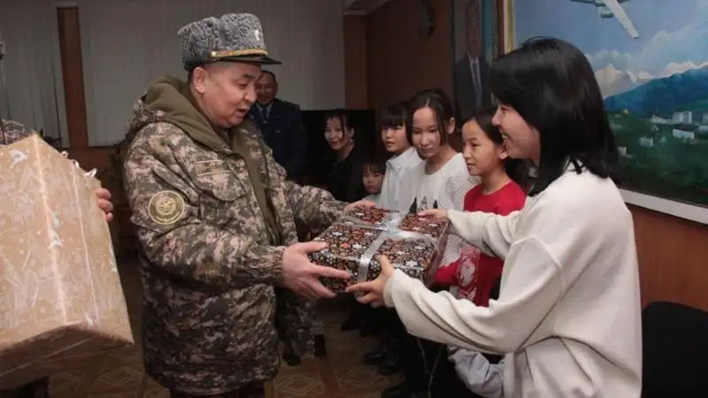 В канун Нового года семью военнослужащего Сунгата Иманалина поздравил и вручил подарки заместитель министра обороны генерал-лейтенант Мухамеджан Таласов. И это внимание отнюдь не случайно. Во-первых, Сунгат Иманалин проявил себя как отличный специалист, во-вторых, вместе с женой Акмарал он воспитывает восьмерых дочерей и двух сыновей.