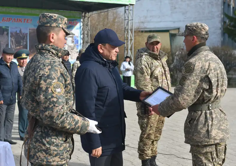 От имени военнослужащих выступил солдат воинской части 68665 Нурдаулет Абдирахымбай и поблагодарил всех североказахстанцев за радушный прием, заботу и поддержку.