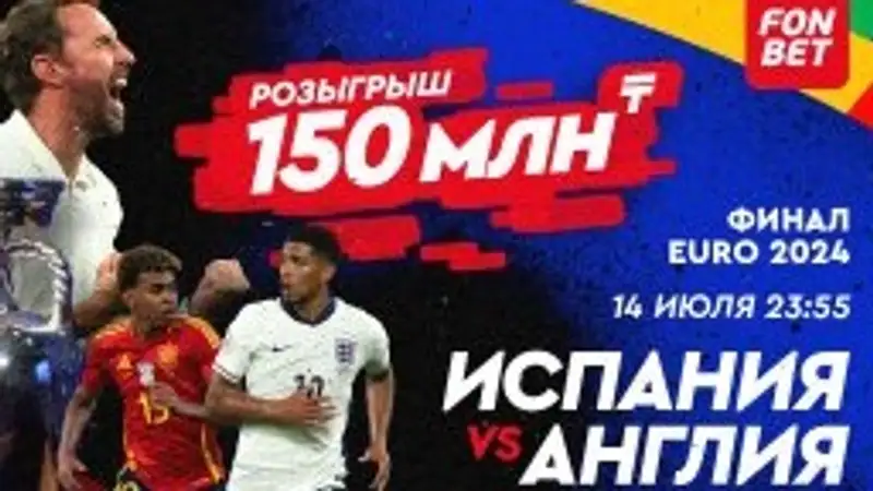Игра Испания – Англия начнется в воскресенье, 14 июля, в 23:55 по казахстанскому времени. Матч пройдет на "Олимпиаштадионе" в Берлине. Прямую трансляцию игры покажут каналы Qazaqstan и Qazsport, а следить за ходом финала в Live-режиме можно будет на сайте и в приложении FONBET.