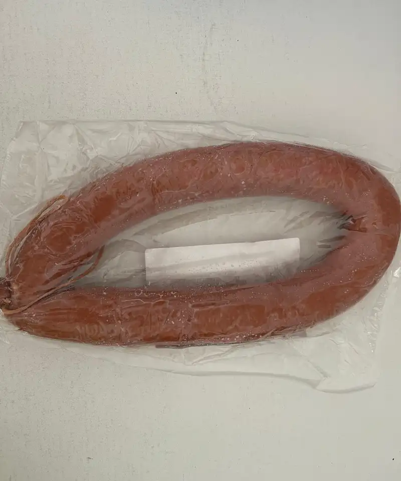 Органолептические исследования выявили на поверхности колбасы белый налет и липкость. Хотя микробиологические загрязнения не были обнаружены, такие изменения могут указывать на нарушение условий хранения или производственные дефекты.