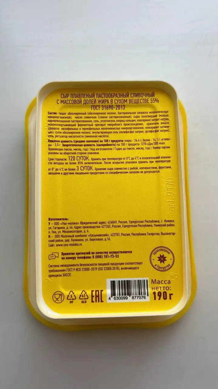 В целях проведения комплексного исследования на соответствие техническим регламентам Таможенного союза закупленный плавленый сыр был передан в лабораторию филиала РГП на ПХВ "Национальный центр экспертизы" по Кызылординской области Комитета санитарно-эпидемиологического контроля Министерства здравоохранения РК.
