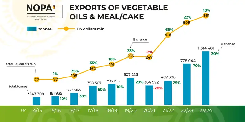 Согласно подсчетам НАПМК, при переходе на производство масложировой продукции высоких переделов валютная выручка вырастет еще минимум на 25%.
