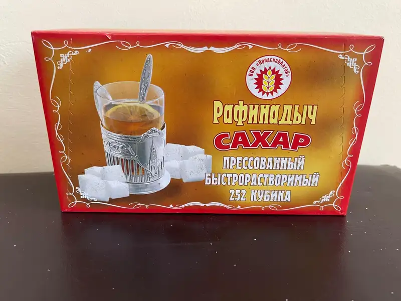 - "РАФИНАДЫЧ" сахар прессованный, быстрорастворимый, 252 кубика, массой 1000 г., от ООО "ПродснабАлтай" (Россия);