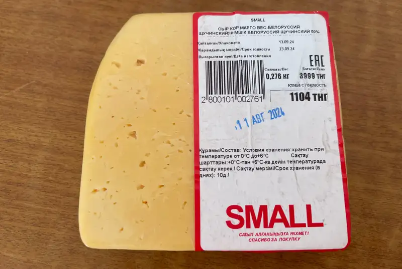 Кроме того 10.10.2024 сектором стандартизации и информационного обеспечения Костанайского филиала АО "Национальный центр экспертизы и сертификации" проведена экспертиза маркировки потребительской тары данного сыра на соответствие требованиям Технического регламента Таможенного союза ТР ТС 033/2013 "О безопасности молока и молочной продукции", утвержденного, принятого решением совета Евразийской экономической комиссии от 9 октября 2013 года №67, Технического регламента Таможенного союза ТР ТС 022/2011 "Пищевая продукция в части ее маркировки", утвержденного решением комиссии Таможенного союза от 09.12.2011 №881, Закона РК "О языках в Республике Казахстан" от 11.07.97.