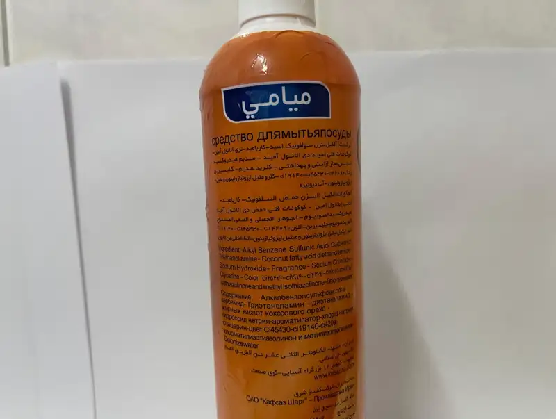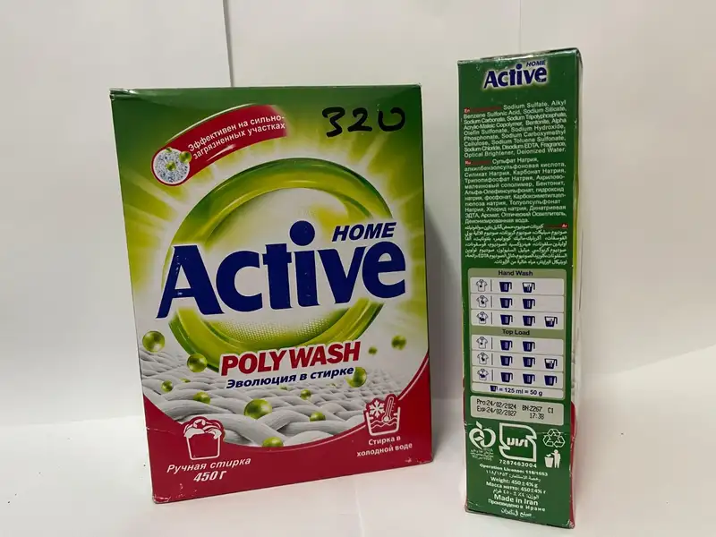 Стиральный порошок для ручной стирки одежды и полуавтоматических стиральных машин Aktive home Poly Wash и средство для мытья посуды Mayamay Dishwashing Liquid, произведенные в Иране, не содержат следующей информации: