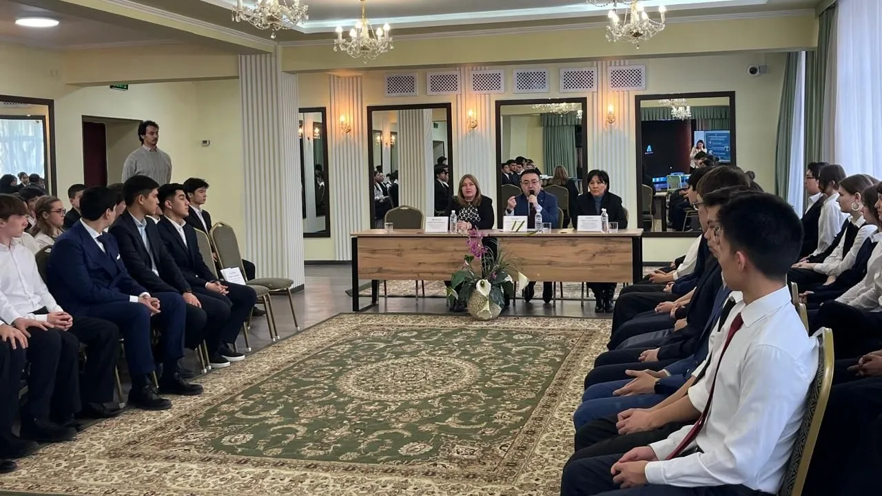 Арман Рахимов обсудил с учащимися гимназии продолжение совместной работы и поблагодарил ребят за интересную встречу.