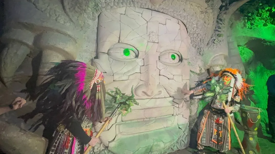 И без того интересный интерактивный зал сегодня пополнился уникальным объектом – "Поющими скалами". Объект представляет собой искусственные скалы, в которых размещены лица. Они включаются после ударов в барабаны. Уникальность проекта еще и в том, что эти лица исполняют казахское попурри.