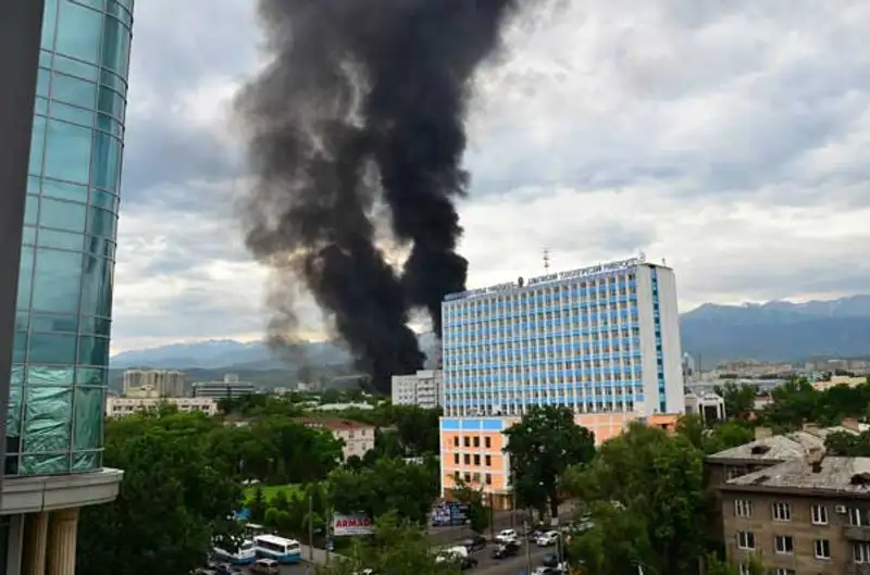 Сильный пожар в центре Алматы: перевернулся и взорвался бензовоз (фото), фото - Новости Zakon.kz от 27.06.2013 16:37В Алматы на пересечении проспекта Сейфуллина и улицы Кабанбай батыра перевернулся бензовоз, сообщает информационная служба Zakon.kz.