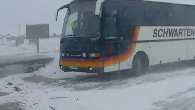 Междугородний автобус марки «Мерседес» с 40 пассажирами (из них 5 детей) оказался в снежном заторе на 606 километре трассы «Алматы-Оскемен» из-за поломки в топливной системе.