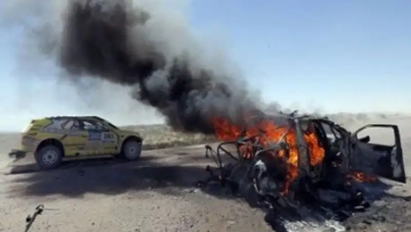 На одном из участков дистанции из Сан-Луиса в Сан-Рафаэль их внедорожник вспыхнул и в итоге сгорел почти дотла. Сами спортсмены не пострадали.