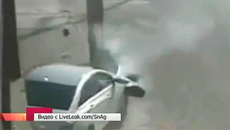 На кадрах с камеры наблюдения видно, как женщина, ни о чём не подозревая, спокойно ступает по тротуару. Вдруг прямо на неё несётся автомобиль, потерявший управление. Если бы не столб и не реакция самой дамы, то жутко подумать, чем бы это закончилось.