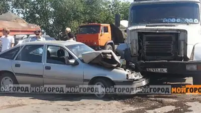 Сегодня, 1 августа, примерно в 9 часов утра на улице Шолохова в районе выезда в поселок Селекционный произошло ДТП. Мусоровоз ТОО "Орал таза сервис" буквально наехал на автомашину марки "Опель".