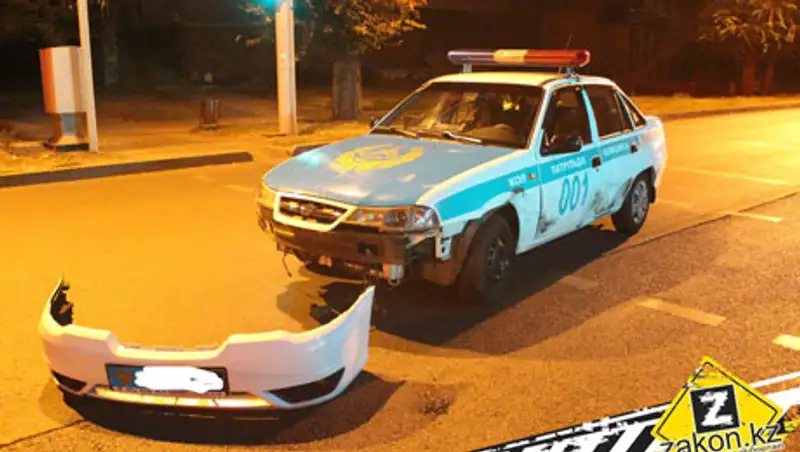 В Алматы во время погони угонщик разбил патрульный автомобиль