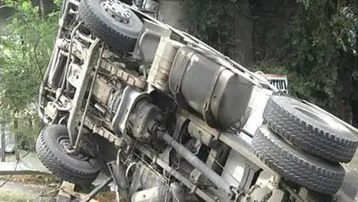 В Алматы перевернулся китайский грузовик