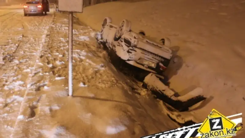 На ВОАД в Алматы Тойота Камри перевернулась на крышу и угодила в арык