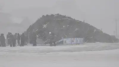 Шквальный ветер повалил 18-метровую новогоднюю елку в Шымкенте