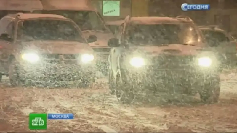 Автомобили десятками бьются на заснеженных московских трассах