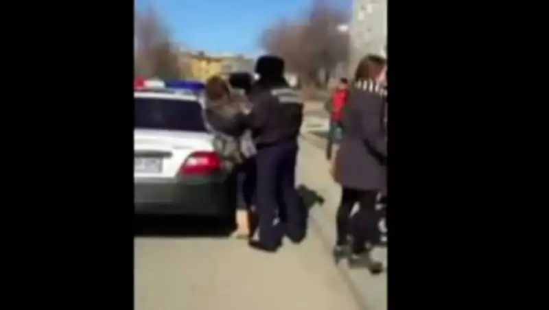 Как сообщает автор ролика, со слов сотрудников дорожной полиции, автомобиль под управлением женщины остановили за якобы выключенные фары. За это стражи порядка вытащили ее силой из машины и пытались усадить в патрульный автомобиль.