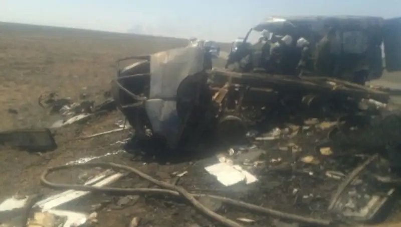 В результате столкновения транспортные средства загорелись. На месте пожара были обнаружены 14 сгоревших тел (водитель автомашины «Газель» и 13 пассажиров "Мерседеса", 3 из них дети).