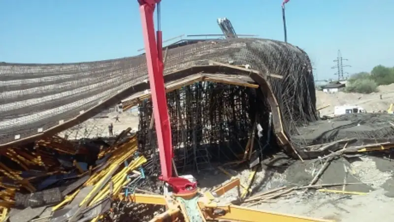 В Алматы на пересечении улиц Рыскулова - Ахрименко произошло обрушение строящегося моста. Сообщение о происшествии поступило в 11:26. На место ЧП оперативно прибыли сотрудники ДЧС и Службы спасения Алматы. По оперативной информации, на данный момент известно о 8 пострадавших, 1 человек, вероятно, находятся под завалами, сообщает корреспондент Zakon.kz.