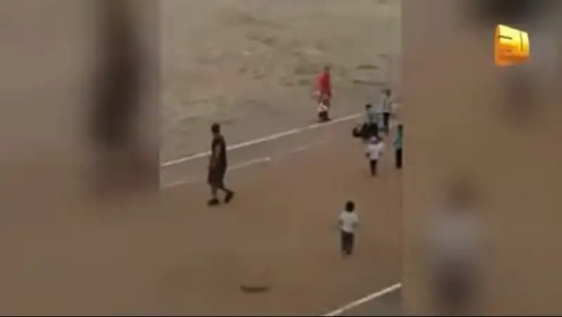 На видео - обычная дворовая драка мальчишек до тех пор, пока в нее не вмешивается взрослый. Мужчина решительным шагом движется к сцепившимся в схватке детям, но вместо того, чтобы разнять, хватает одного из мальчиков, перекидывет через плечо и с силой бросает на землю. Ребенок кричит и корчится от боли, а взрослый невозмутимо удаляется. Принцип "лежачего не бьют" не работает: второй мальчик со всей злости пинает поверженного соперника.