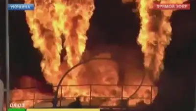 Всего на территории базы находятся 17 резервуаров с топливом. В украинской милиции считают, что начавшийся вчера пожар стал следствием нарушения правил техники безопасности.