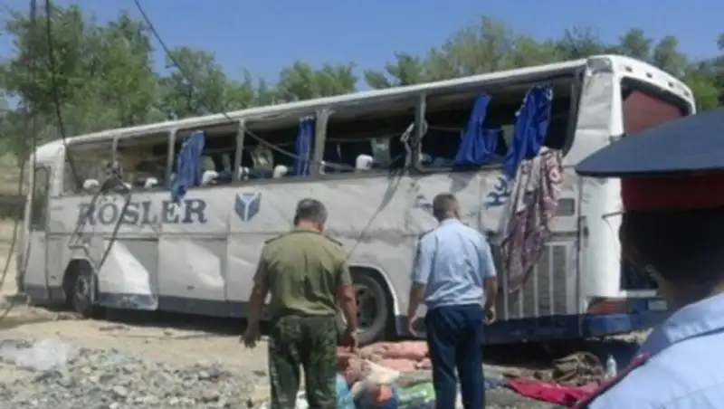 Пассажирский транспорт опрокинулся на трассе Таскескен-Бахты в Урджарском районе. //