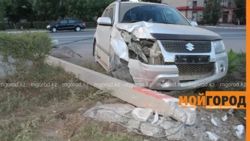 Автомобиль консульства России в Уральске врезался в столб