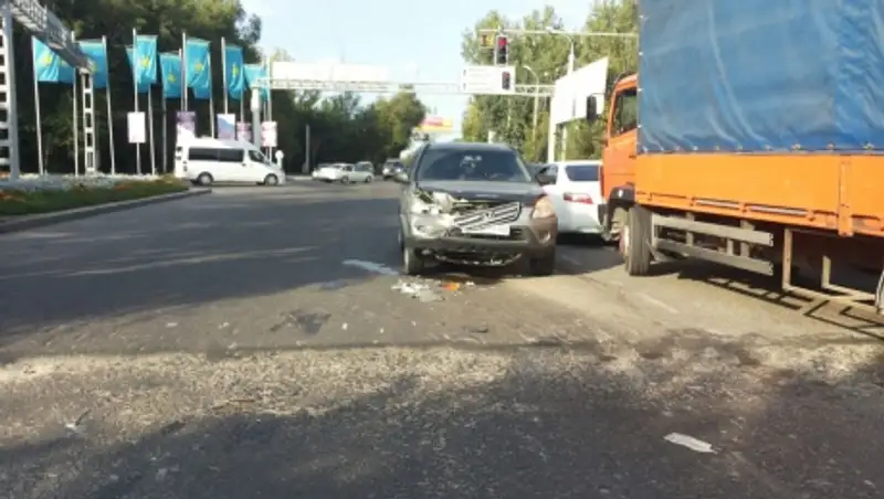 Из-за несоблюдения дистанции на перекрестке в Алматы произошло 2 ДТП подряд