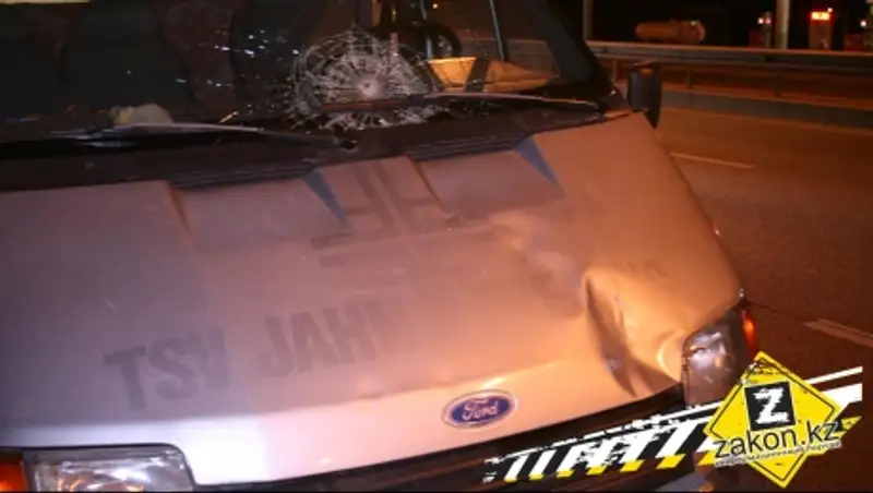 Микроавтобус Форд, двигаясь по Райымбека в западном направлении допустил наезд на пешехода, переходившего дорогу в неположенном месте. Буквально в нескольких метрах от места столкновения находится надземный пешеходный переход. От полученного удара парень отлетел более чем на 10 метров.