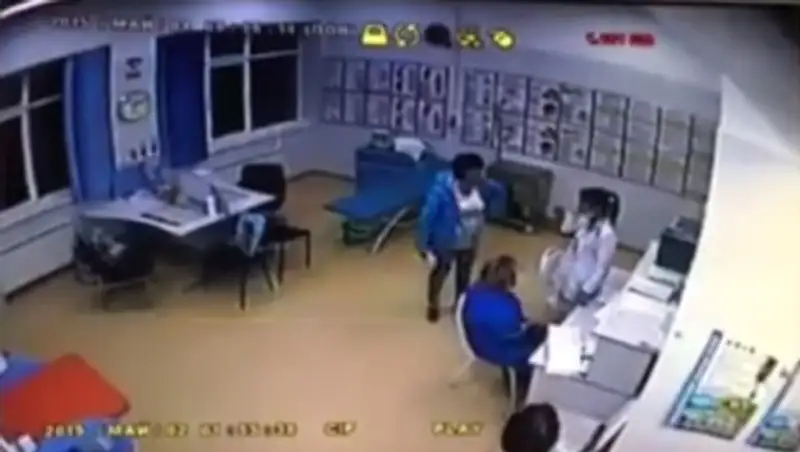 На видеозаписи видно, как сотрудники медучреждения заполняют какие-то бумаги. Затем к ним подходит недовольная посетительница, примерно 40 лет, и резким движением раскидывает бумаги на столе. После женщина подошла к врачу и ударила ее. Судя по дате на видеозаписи, она была снята в мае этого года.