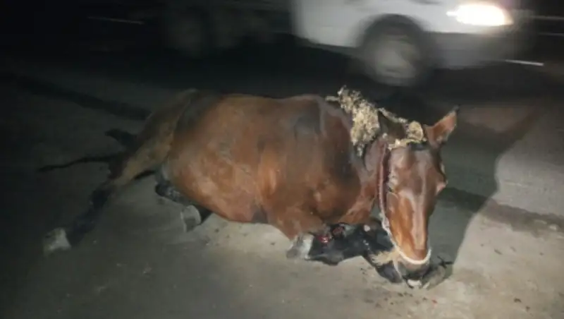 На Кульджинской трассе в Алматы была сбита лошадь, передает корреспондент Zakon.kz.