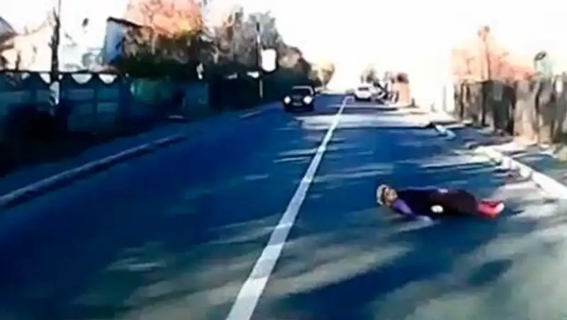 Поражает тот факт, что кинувшись на дорогу "героиня" ролика не опустила голову, не закрыла глаза, а лежала и смотрела на приближающуюся машину.