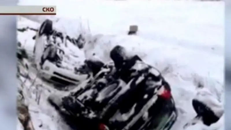 Сильнейший гололед на севере страны привёл к крупной аварии. На трассе Костанай – Петропавловск перевернулся автовоз с новыми машинами, сообщает КТК.