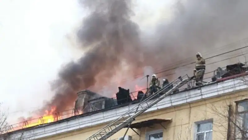 Крупный пожар произошел в четырехэтажном жилом доме в центре Караганды, горела крыша дома, передает корреспондент ИА Новости-Казахстан с места события.