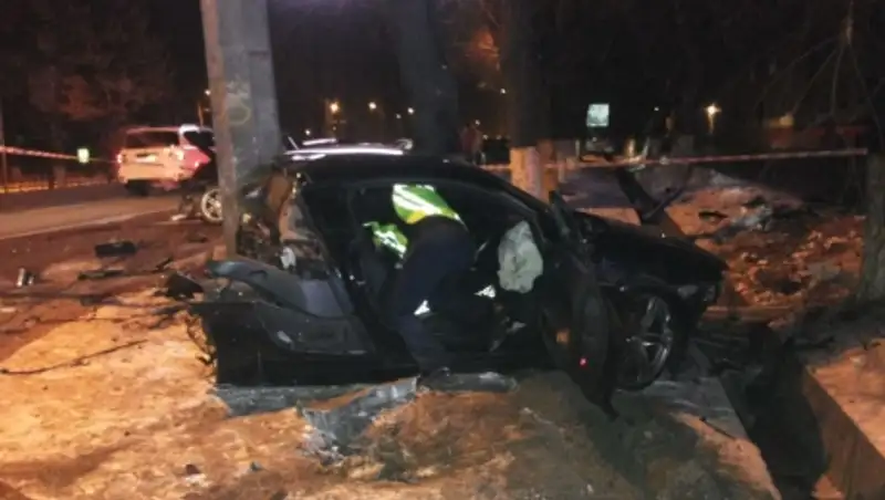 В Алматы в результате ДТП Audi R8 разорвало на две части, сообщает Zakon.kz.