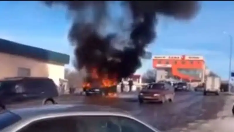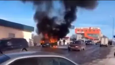 В Алматинской области пылающая машина ехала по оживленной улице