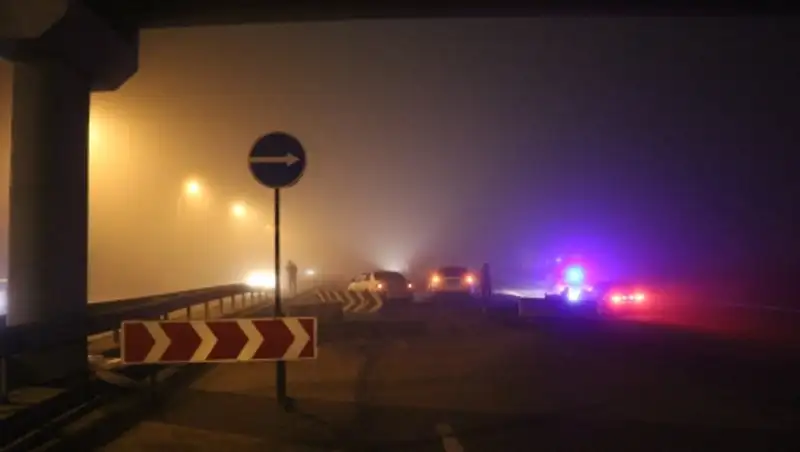В Алматы водитель из-за ограниченной видимости и снесенного дорожного знака врезался в бетонные блоки строящейся транспортной развязки, сообщает Zakon.kz.