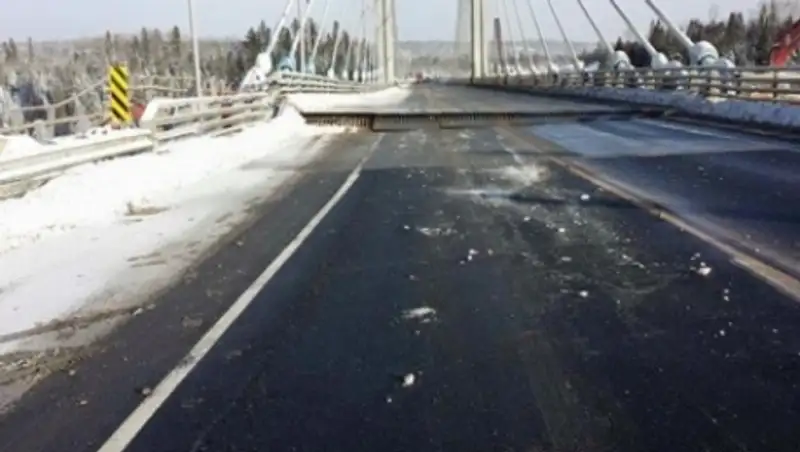 Новый мост трансканадской магистрали, единственной, соединяющей восточную и западную Канаду, был закрыт после того, как в нем появилась трещина из-за сильных холодов.