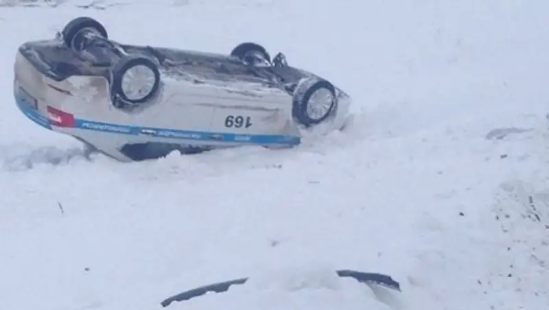 Как сообщили очевидцы, авария произошла днем 16 января. На автодороге Уральск-Аксай столкнулись пассажирский «Шаран» и машина батальона дорожно-патрульной полиции. Авто полицейских вылетело в кювет и перевернулось на крышу.