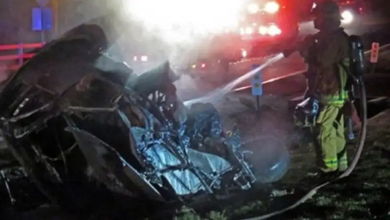 Пикап съехал с дороги, перевернулся несколько раз и затем загорелся.