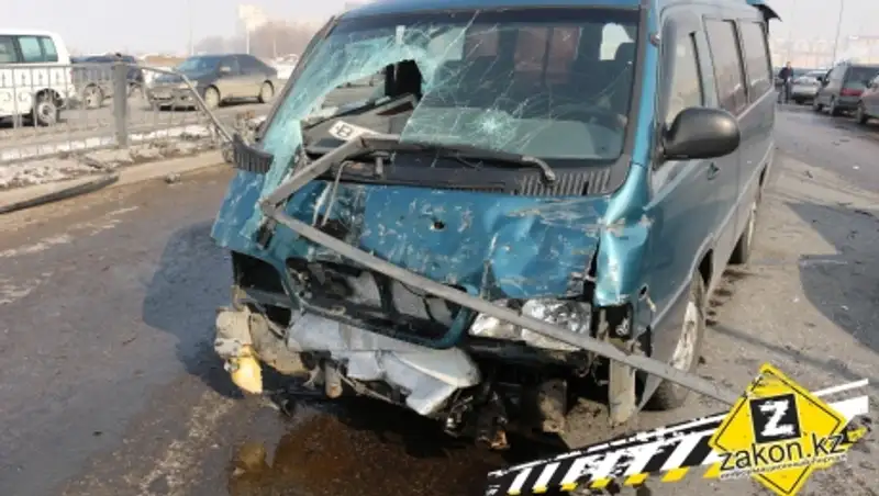 Инцидент произошел на проспекте Рыскулова. Грузовик Lifan и микроавтобус SsangYong двигались от Момышулы в западном направлении.По неизвестной причине, грузовик зацепил микроавтобус. Оба автомобиля вылетели через разделительное ограждение на полосу встречного движения. На ней происходит столкновение с Nissan Sunny.