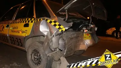 В Алматы предположительно нетрезвый водитель Mitsubishi Carisma на полном ходу врезался в машину такси, сообщает Zakon.kz.