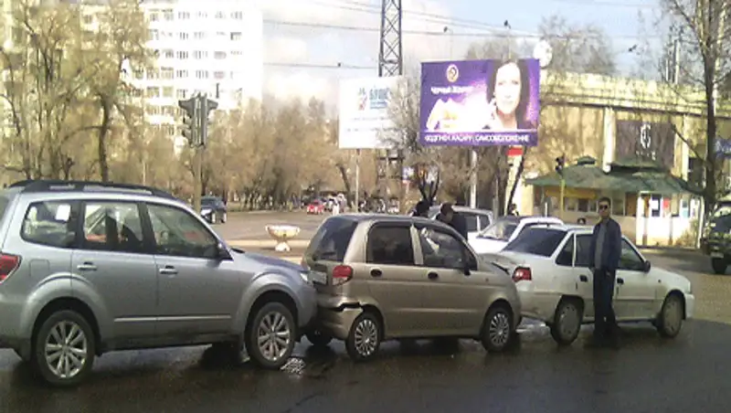 В Алматы на перекрестке Джандосова - Розыбакиева "поцеловались" сразу три авто