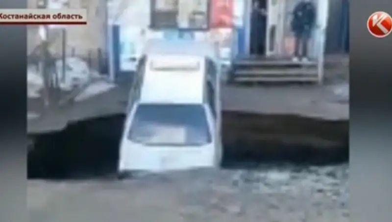 В Костанае под припаркованной машиной разверзлась земля