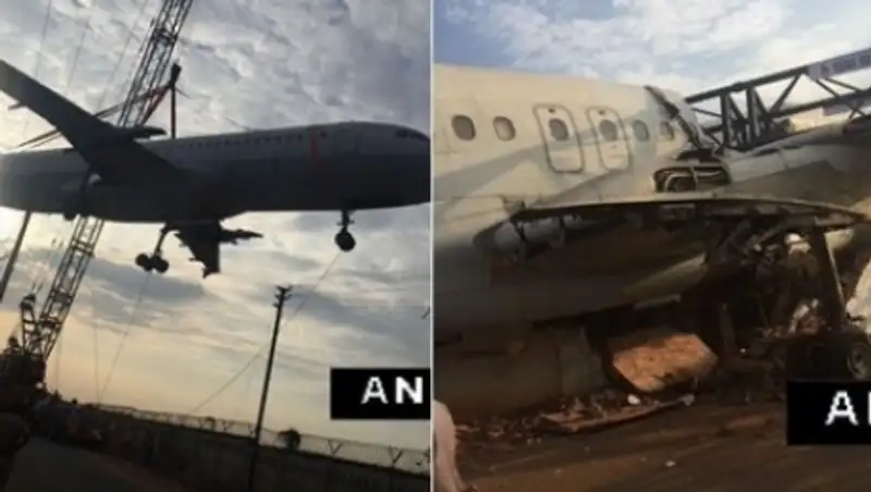 В Индии башенный кран упал на самолет