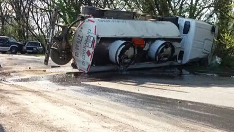 Под Алматы перевернулся бензовоз