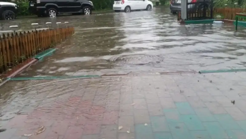 Журналист Мухит Сапарбаев снял проспект Абая, в районе улицы Алтынсарина. «Я припарковал машину во дворе, но боюсь, что она пострадает. Пока дошел до дома, промокла обувь», - рассказал Сапарбаев.