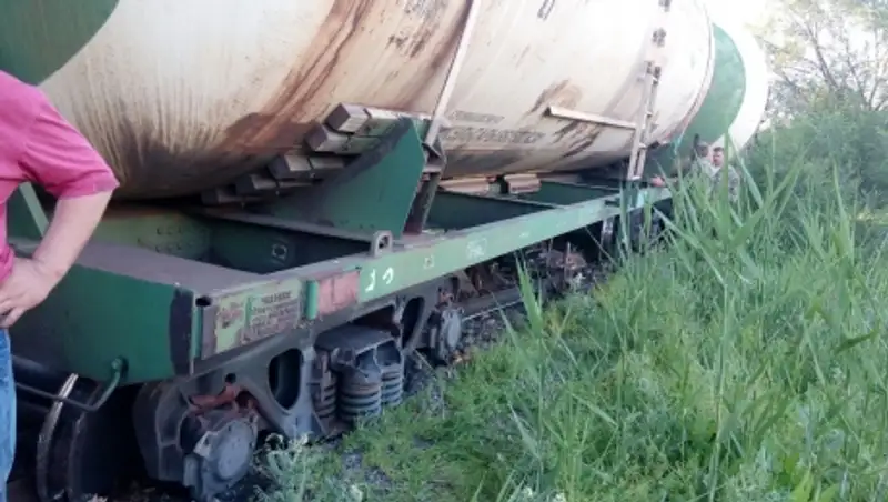 "Ориентировочно в 17.30 ч. при перевозке авиационного керосина, из восьми цистерн сошли с рельсов железной дороги пять цистерн. Ни одна из цистерн не перевернулась, угрозы они не представляют. Находятся цистерны на земляной насыпи вдоль железной дороги. Утечки нет", - отметил Р.Иманкулов.
