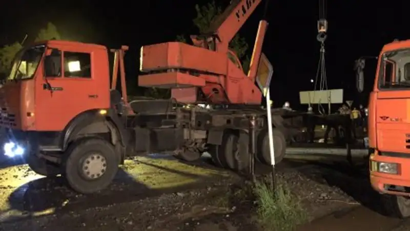 "Вода прошла по дороге и ниже возвращалась в свое русло. Угрозы подтопления нет. В данное время разобран трубчатый переезд и установлены бетонные блоки, то есть создан временный мост для перехода людей и техники", - сказала она.